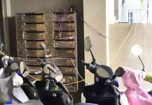 循著電線一路尋覓,發現了形形色色的插座,有帶開關操控的,有帶塑料防護殼的,更多的則是不帶開關操控的各式多用插座。一些業主為了便利收納運用,直接把插座掛在樓梯間的墻壁上,有的釘上鐵釘掛上布袋,將插座裝入其間,有的隨意放置在樓道口的地面上。一些插座被包裹進塑料袋或紙袋,丟在綠化帶的灌木叢中,一些乃至被掛在了景象樹上。不管這些插座是放在布袋、塑料袋、紙袋,仍是草坪樹叢中,都存在很大的安全風險。一些業主為了便利充電,直接把電動車停在樓道口,影響了正常通行,遇到雨天,這樣的充電方法還極易形成電線短路,引發火災。